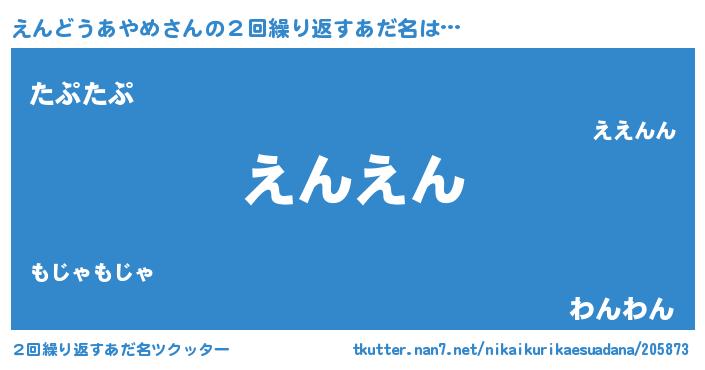 | ヘコむあだ名 | 『えんにー』『なまこ酢』『えん太郎』 |