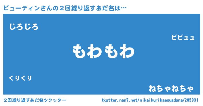 | 男性向けラノベタイトル風あだ名 | 『Re:ビューティンから始める異世界生活』 |