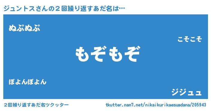 | 意味不明あだ名 | 『自称ジュントス』『永久保存ジュントス』 |
