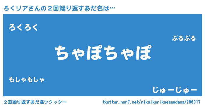 | 意味不明あだ名 | 『ペロリンろくリア』『自称ろくリア』 |