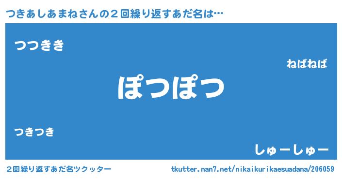 | 男性向けラノベタイトル風あだ名 | 『つきあしあまねに滅ぼされるだけの簡単なお仕事です』 |