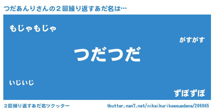 | 男性向けラノベタイトル風あだ名 | 『ツダアンリアートオンライン』 |