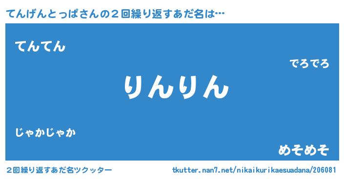 | 欧米人風あだ名 | 『アンジェラ・てんげんとっぱ』 |
