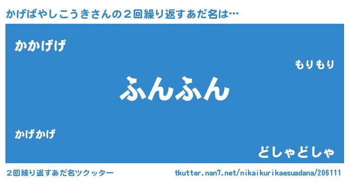 | 男性向けラノベタイトル風あだ名 | 『おまえをオタクにしてやるから、俺をかげばやしこうきにしてくれ! 』 |