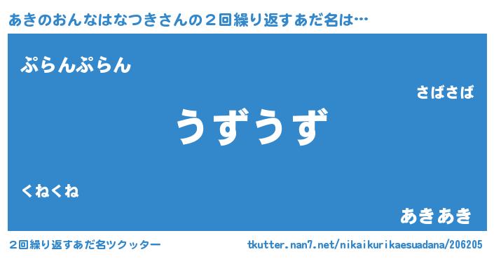 | 意味不明あだ名 | 『とにかく怪しいあきのおんなはなつき』 |