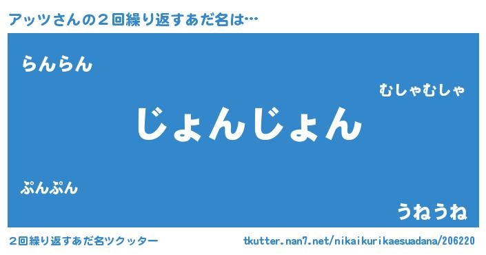 | 意味不明あだ名 | 『住所不定無職アッツ(43歳)』『自称アッツ』 |