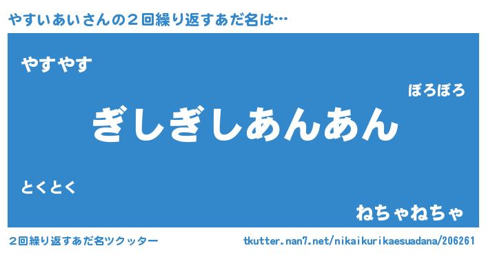 | ヘコむあだ名 | 『やすいあい(笑)』『やすにゅー』 |