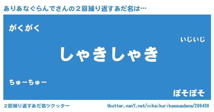 | 意味不明あだ名 | 『住所不定無職ありあなぐらんで(8歳)』 |