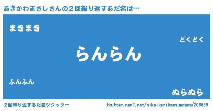 | 男性向けラノベタイトル風あだ名 | 『アキカワマサシスレイヤー』 |