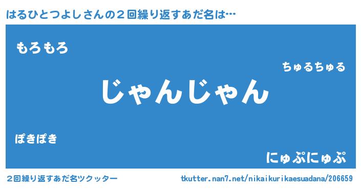 | 意味不明あだ名 | 『住所不定無職はるひとつよし(84歳)』 |