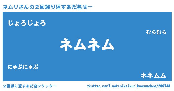 | ヘコむあだ名 | 『ネムにゅー』『なまこ酢』『ネムを』 |