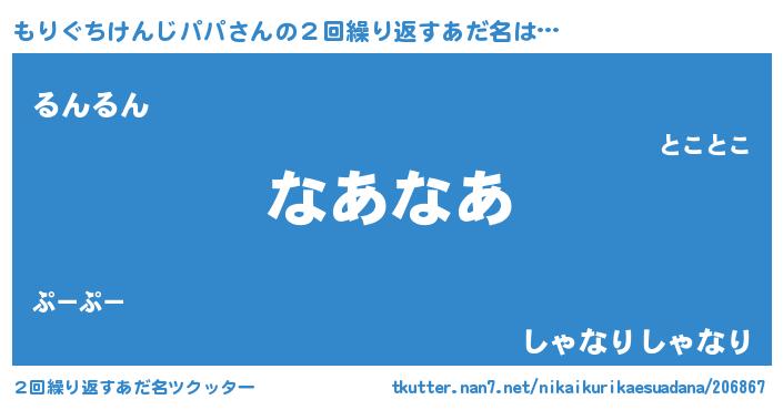 欧米人風あだ名 | 『ウサインもりぐちけんじパパ』 |
