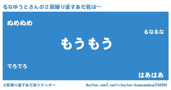 | 男性向けラノベタイトル風あだ名 | 『Re:るなゆうとから始める異世界生活』 |