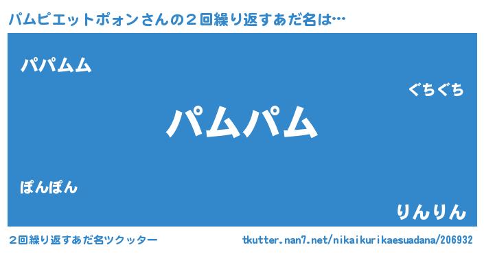 | ポケモン風あだ名 | 『パムチュウ』『パムピダネ』 |