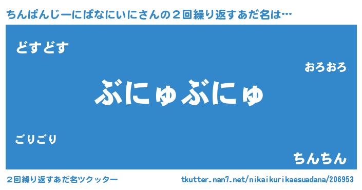 料理風あだ名 | 『ちんぱんじーにばなにいにのトマト煮』 |
