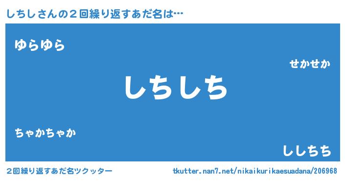 | ヒーロー風カッコイイあだ名 | 『スーパーシチシ』『ウルトラしちしマン』 |