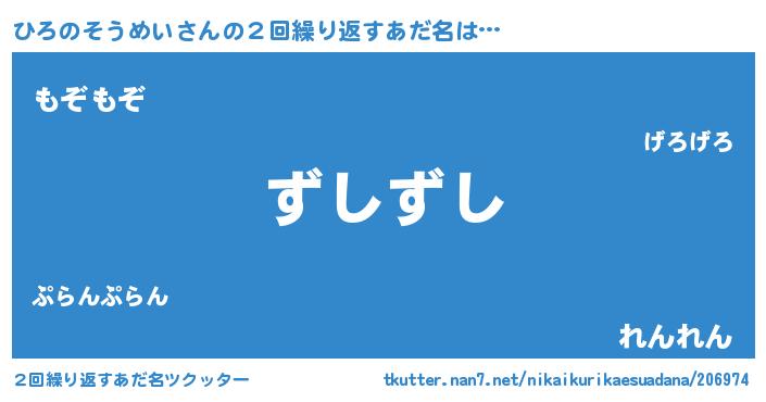 | 意味不明あだ名 | 『住所不定無職ひろのそうめい(91歳)』 |