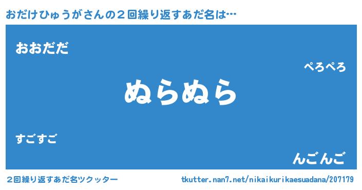 欧米人風あだ名 | 『ウサインおだけひゅうが』 |
