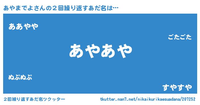 ファンタジー風あだ名 | 『アヤフェル』『エターナルアヤマデヨー』 |