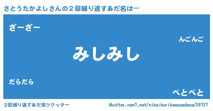 | 意味不明あだ名 | 『自称さとうたかよし』 |