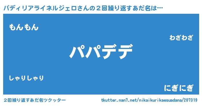 | ファンタジー風あだ名 | 『エターナルパディリアライネルジェロー』 |