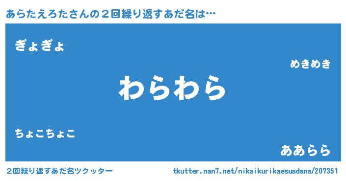 | 欧米人風あだ名 | 『トリンドルあらたえろた』 |