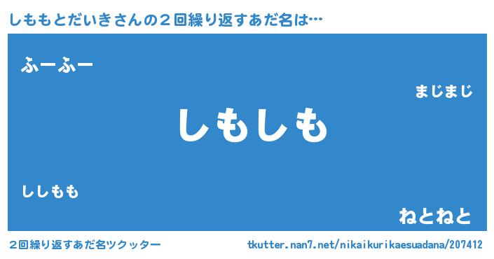 | ヘコむあだ名 | 『しもっふぃ~』『しもっ子』 |