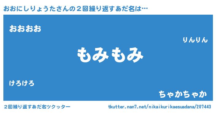 | 意味不明あだ名 | 『自称おおにしりょうた』 |