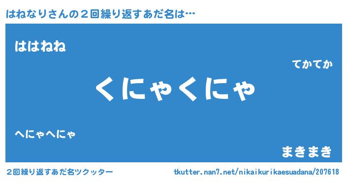 | 胡散臭い通販商品みたいなあだ名 | 『来世でも幸せになれる水素水…その名も「はねなり」』 |