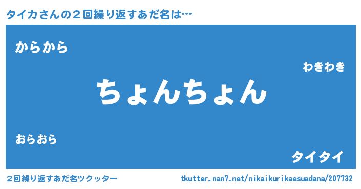 | 意味不明あだ名 | 『永久保存タイカ』『ペロリンタイカ』 |
