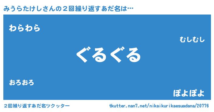 | 意味不明あだ名 | 『永久保存みうらたけし』 |