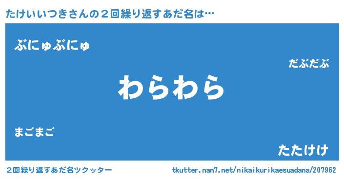 | ヘコむあだ名 | 『レバニラ』『たけいいつき(震え声)』 |