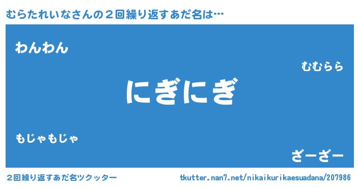 | 意味不明あだ名 | 『とにかく怪しいむらたれいな』 |