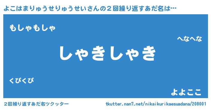 | 女子向けラノベタイトル風あだ名 | 『よこはまりゅうせりゅうせいが死なない童話 林檎のよこはまりゅうせりゅうせいの診療簿』 |