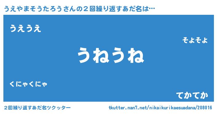 | ポケモン風あだ名 | 『ヒウエヤマソウタロウ』『ウエチュウ』 |