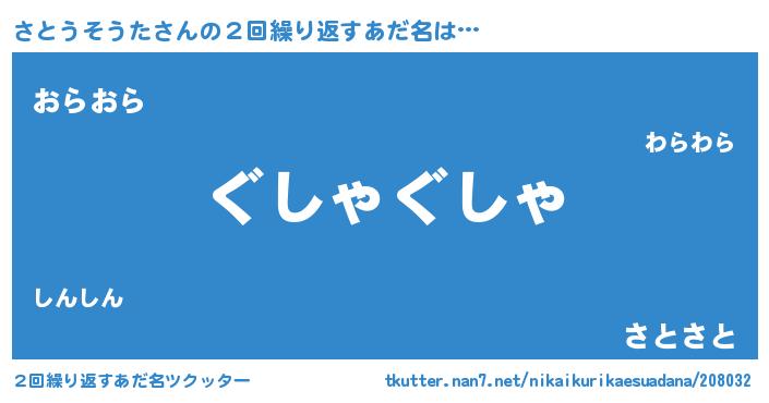 | 意味不明あだ名 | 『永久保存さとうそうた』 |
