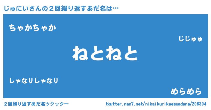| 男性向けラノベタイトル風あだ名 | 『じゅにいの嫁は女の子じゃないと思った?』 |