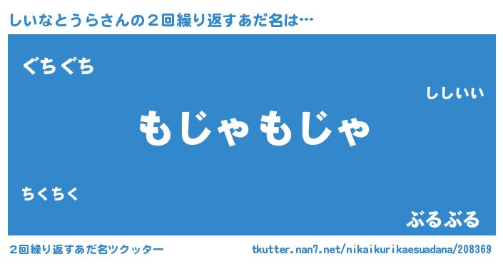 | ヘコむあだ名 | 『しいなとうら(苦笑)』『豆乳』 |