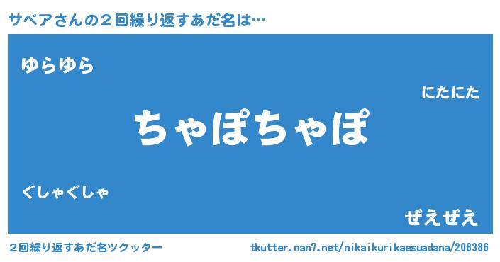 | 意味不明あだ名 | 『めかぶ科サベア属』『永久保存サベア』 |