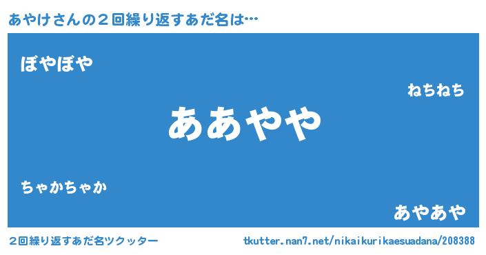 | ヘコむあだ名 | 『なまこ酢』『あやもー』『あやっぺ』 |