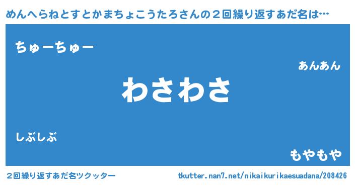 | 欧米人風あだ名 | 『トリンドルめんへらねとすとかまちょこうたろ』 |