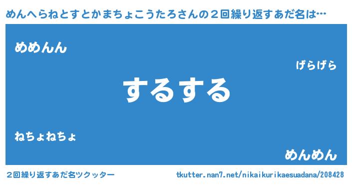 | 意味不明あだ名 | 『住所不定無職めんへらねとすとかまちょこうたろ(53歳)』 |