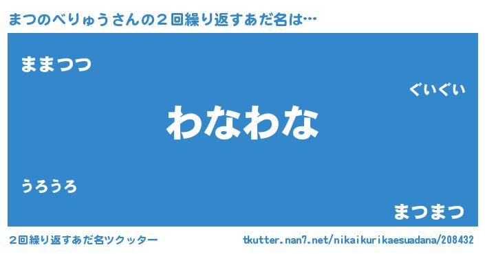 | 意味不明あだ名 | 『ニラ科まつのべりゅう属』 |