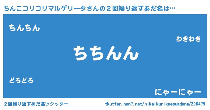 | ファンタジー風あだ名 | 『エターナルチンココリコリマルゲリーター』 |