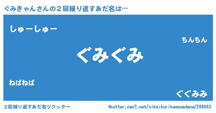 | ヘコむあだ名 | 『ぐみにー』『酢こんぶ』『ぐみお』 |