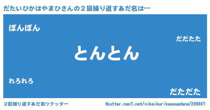 | 男性向けラノベタイトル風あだ名 | 『うちのだたいひかはやまひが世界を掌握している!』 |