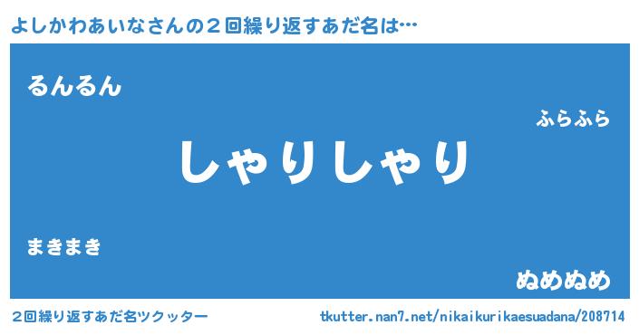 | 男性向けラノベタイトル風あだ名 | 『魔弾の王とよしかわあいな』 |