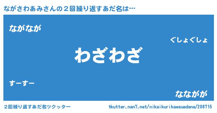 | 男性向けラノベタイトル風あだ名 | 『ながさわあみ~年齢イコール彼女いない歴の魔法使い~』 |
