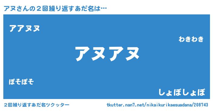 | ヘコむあだ名 | 『アヌもー』『牛乳』『アヌ(震え声)』 |