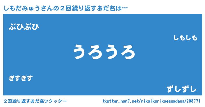 | 欧米人風あだ名 | 『ウサインしもだみゅう』 |